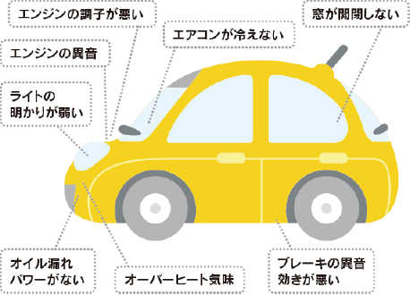 一般整備 店舗 Twitter Facebook 2023.02.232023.02.21 目次 一般整備一般整備の主な項目 一般整備 自動車はエンジンをかけているだけで、オイルやベルト類などが劣化・磨耗します。 タイヤやブレーキ部品なども磨耗・損傷します。 また、時間の経過でバッテリやオイル類が劣化など、日ごろから点検整備の管理が必要となります。 これらの消耗部品、点検・整備もメカニックセンターにお任せください。 一般整備の主な項目 ●エンジンオイル・オイルエレメント交換 ●バッテリー交換 ●ブレーキフルード交換 ●ブレーキパッド・ブレーキライニング交換 ●ワイパー・ランプ交換